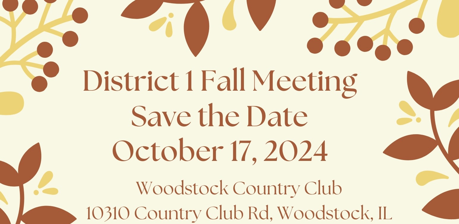 April 3 2025 District 1 Spring Meeting Hosted by the Countryside Garden Club. Location : The Crystal Lake Country Club. Open to District 1 garden club members only.